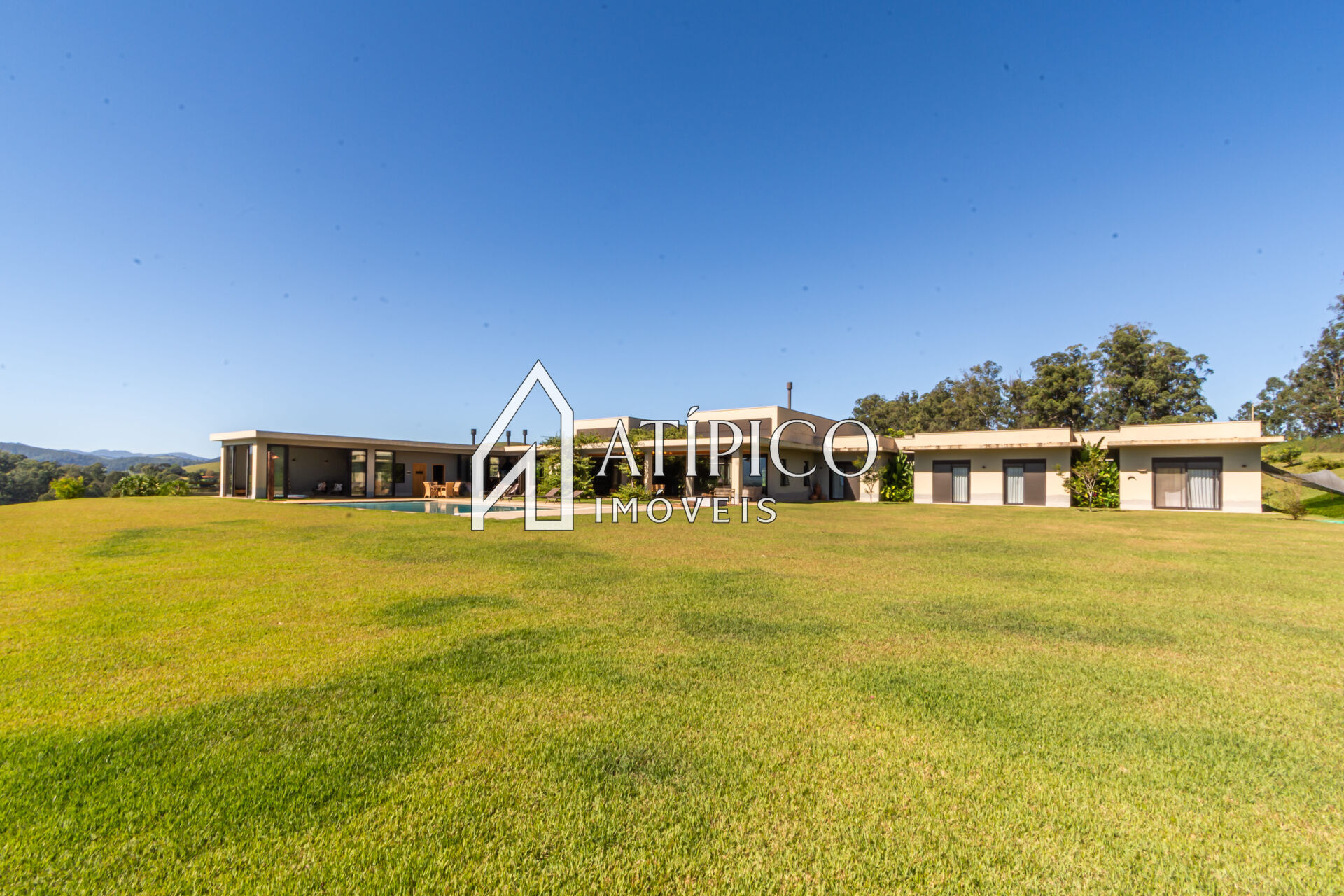 Casa principal são 04 suítes interligadas por corredor interno, sala de estar com lareira e mesa de jogos, sala de TV, 01 banheiro social, adega subterrâneo, sala de jantar para 12 pessoas, ampla varanda com 03 ambientes e jardim interno com jaboticabeira sabará produzindo, churrasqueira, fogão caipira, forno de pizza e cervejeira, cozinha, despensa, área de serviço e quarto de empregada.